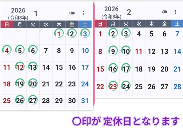1月1日〜6日火曜日まで